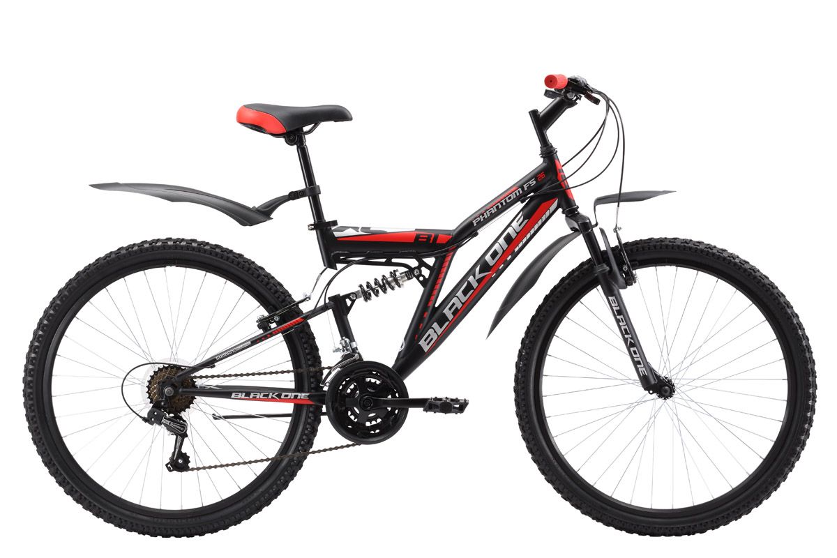 Горный велосипед Black One Phantom FS 26, обладающий мощной стальной рамой и ободными тормозами, отлично подходит для разных типов дорог. Управление 21 скоростной трансмиссией выполняется при помощи курковых переключателей. Пластиковые крылья и подножка придают велосипеду наибольший комфорт. Для любителей погонять по грязным или снежным дорогам Black One предлагает варианты двухподвеса с механическим дисковым тормозом - Black One Phantom FS 26 D или Black One Descender FS 26 Alloy D с дисковыми тормозами на облегчённой алюминиевой раме.